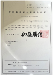 ▶有料職業紹介事業許可証